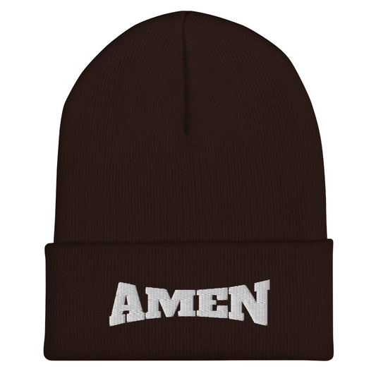 AMEN (The Fighter Collection) Cuffed Beanie Embroidered in White